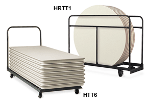 Virco's table trucks work not only with traditional foldng tables, but also with the Core-a Gator line. Trucks are available for transporting and storing both rectangular and round tables.